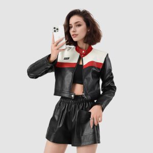 New Color Contrast Patchwork Motorcycle Clothing Pilot Jacket Short Version Coat