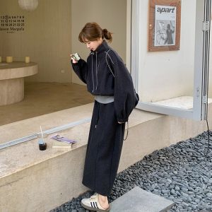 Long Sleeve Half Turtleneck Elegant Cute A- Line Skirt