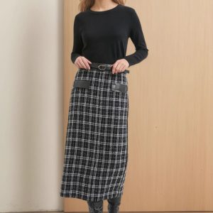New High-waist Fashionable Retro Plaid Patchwork Knitted Skirt