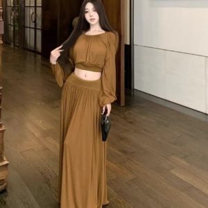 Top And Skirt Shirt High Waist Mid-length Dress Set Two-piece Set