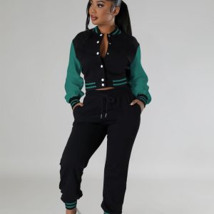 Women’s Fashion Baseball Uniform Stitching Single-breasted Two-piece Suit