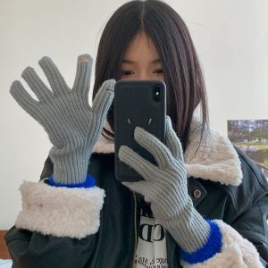 Touch Screen Finger Leakage Gloves Keep Warm Pure Color Finger