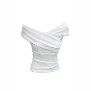 White Irregular Off-shoulder Short Sleeve T-shirt Women