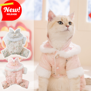 2025 New Autumn Winter Dog Overalls Thick 4-Legged Chinese Floral Tang Style Cotton-Padded Jumpsuit Pet Clothes For Small Dogs