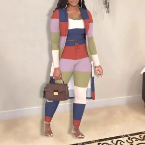 Casual Fashion Colored Plaid Pattern Trousers Jacket Three-piece Set