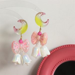 Gradient Moon Bow Blue Bell Vintage Earrings