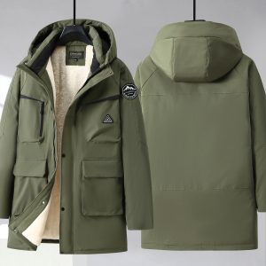 Winter Men’s Cotton Coat Extra Large Size Mid-length With Hood Plus Size And Extra Thick Trendy For Big Men