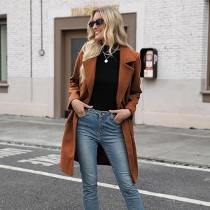 Winter Korean Style Slim Mid-length Double Breasted Turn-down Collar Coat
