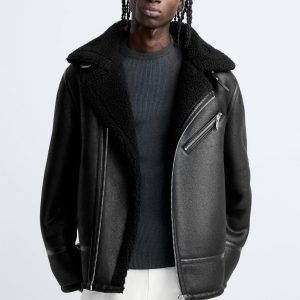 Faux Suede Zipper Composite Fur Integrated Turn-down Collar Coat