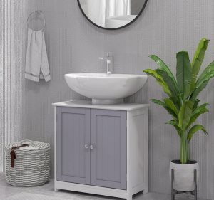 Kleankin Bathroom Vanity Cabinet, Sink Cabinet With U-Shape Cut-Out, Adjustable Shelf, White And Gray