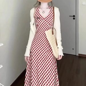 Knitted Embroidered Hollow Cross-collar Stretch Dress