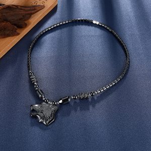 Milk Tea Exaggerated Creative Style Iron Stone Wolf Head Necklace