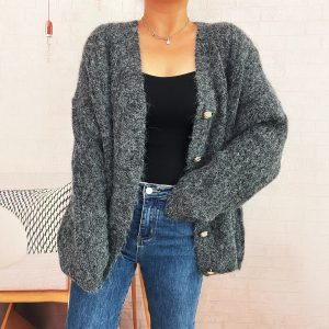 Vintage Gold Button Knitted Cardigan V-neck Single Breasted Sweater Coat