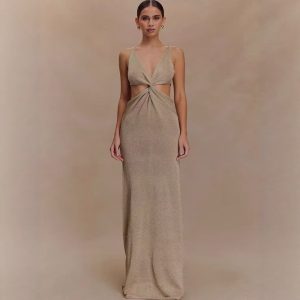 Sexy Twisted Vest Gold And Silver Wire Spring And Summer V-neck Dress