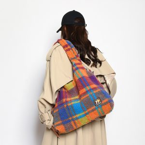 Women’s Plaid Shoulder Crossbody Tote Bag Large Capacity Shoulder Underarm Bag