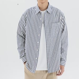Loose Trendy All-match Retro Casual Striped Shirt