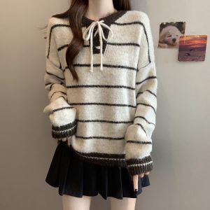 Design Striped Knitted Bottoming Shirt Sweater For Women