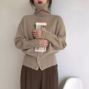 Design High Waist Button Retro Lazy Style Wear Sweater