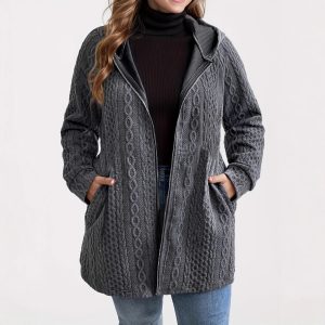 Women’s All-match Rose Leopard Zipper Hooded Sweatshirt
