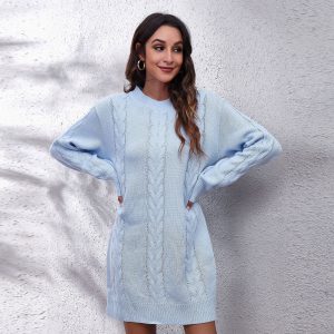 Twist Drop-shoulder Long-sleeve Sweater Women’s Knitted Dress Loose