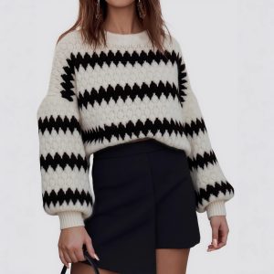 Striped Contrast Color Knitwear Women’s Loose Polo Collar Pullover Sweater