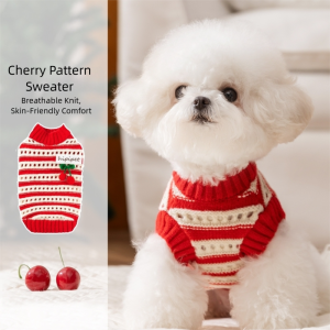 Autumn And Winter Dog Clothing, Warm, Hollowed-out Knitted Cherry Small Dog, Teddy Bichon, Cat Sweater, Pet Clothing