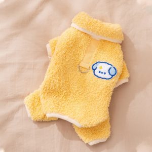 Dog Pajamas, Thick Plush Cartoon Work Clothes, Winter Pet Dog Clothes, Puppy One-piece Suits, Pet Cat Lapel Coats, Cute Girl Outfits For Puppies