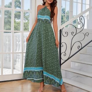 Spring And Summer Leisure Bohemian Holiday V-neck Dress For Women