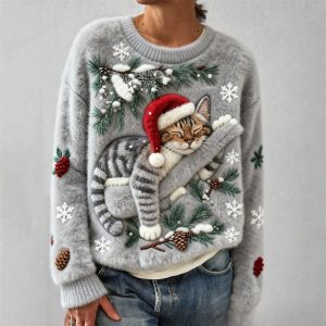 3D Digital Print Flannel Christmas Women’s Round Neck Sweatshirt Autumn Winter