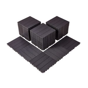 Interlocking Deck Tiles Plastic Wood, 27 Pack,12″x12″ 27 Sq. Ft Waterproof Outdoor Flooring All Weather Use, Patio Floor Decking Covering Tiles For Porch Poolside Balcony Backyard, Dark Brown
