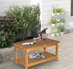 Outdoor Buffet Bar Table 2-Shelf Acacia Wood Storage Organizer Natural Teak Finish