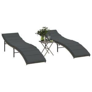 Sun Loungers with Table, 2-Person, 3 pcs, Black and Anthracite