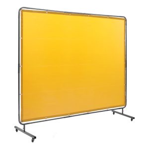 Welding Screen With Frame, 6′ X 8′ Welding Curtain Screen, Flame-Resistant Vinyl Welding Protection Screen On 4 Swivel Wheel (2 Lockable), Moveable & Professional For Workshop/Industrial, Yellow