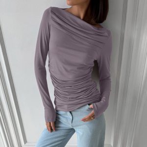 Niche Gathered Waist Regular Shoulder Long Sleeve T-shirt