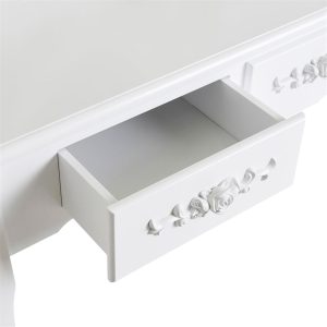 Makeup Vanity Set With Mirror And Stool White Wooden Dressing Table With 4 Drawers Cute Vintage Desk For Bedroom Bathroom Women Girls
