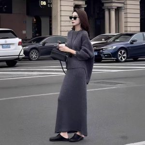 Sweater Wide Leg Trousers Look Slimming Two-piece Suit High