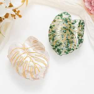 Simple Mori Style Printed Leaves Grip Versatile Hair Clip