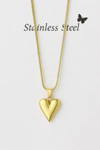 Curved Peach Heart Stainless Steel Pendant Necklace