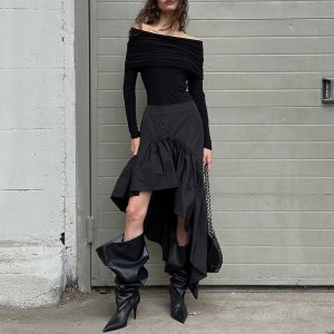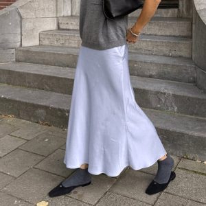 Intellectual Irregular Acetate Satin Skirt Elegant High Waist