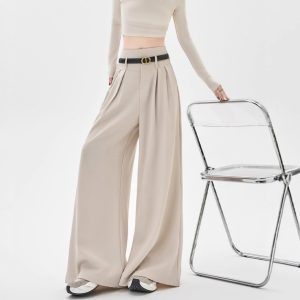 Design Sense Straight High Waist Slimming Draping Effect Casual Mopping Pants