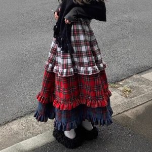 American-style Retro Lace Color Matching Gradient Skirt Women’s All-match Casual