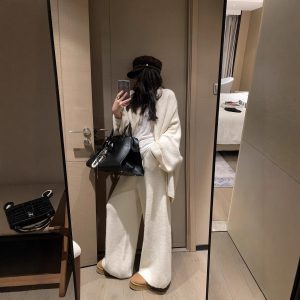 Round-neck Backless Knit Sweater Long Sleeve Pants Set For Women