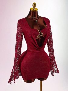 Lace Sheer Patchwork Metal-Trimmed Bodycon Mini Dress