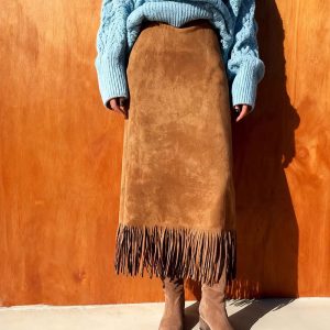 Women’s Elegant A-Line Fringe Hem Skirt Versatile Solid Color Pencil Skirt For Daily To Party Wear