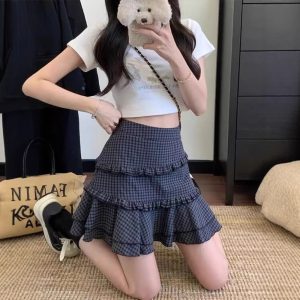 Retro Irregular Plaid Skirt With A Designer Touch For Autumn
