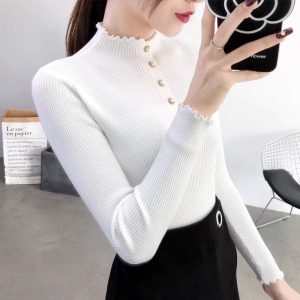 Half Turtleneck Pullover Sweaters Women’s Clothing Slim Fit