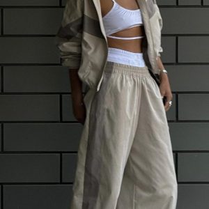New Elastic Mid-waist Trousers Plus Contrast Color Casual Top Fashion Women’s Wear Summer Suit