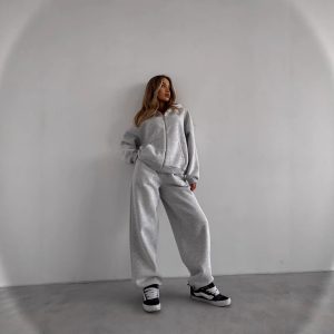 Women’s 2-Piece Zip Neck Long Sleeve Sweatshirt & Slim Fit Pants Set – Sporty Streetwear Outfit For Fall&Winter