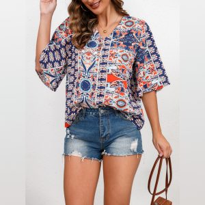 Women’s Fashion Vintage Print Short Sleeve Shirt