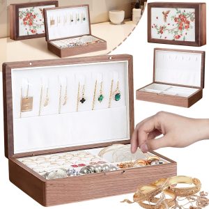 Solid Wood Jewelry Storage Box Ladies Retro Wooden Necklace Jewelry Bracelet Watch Display Box Handmade Wedding Birthday Anniversary Jewelry Box